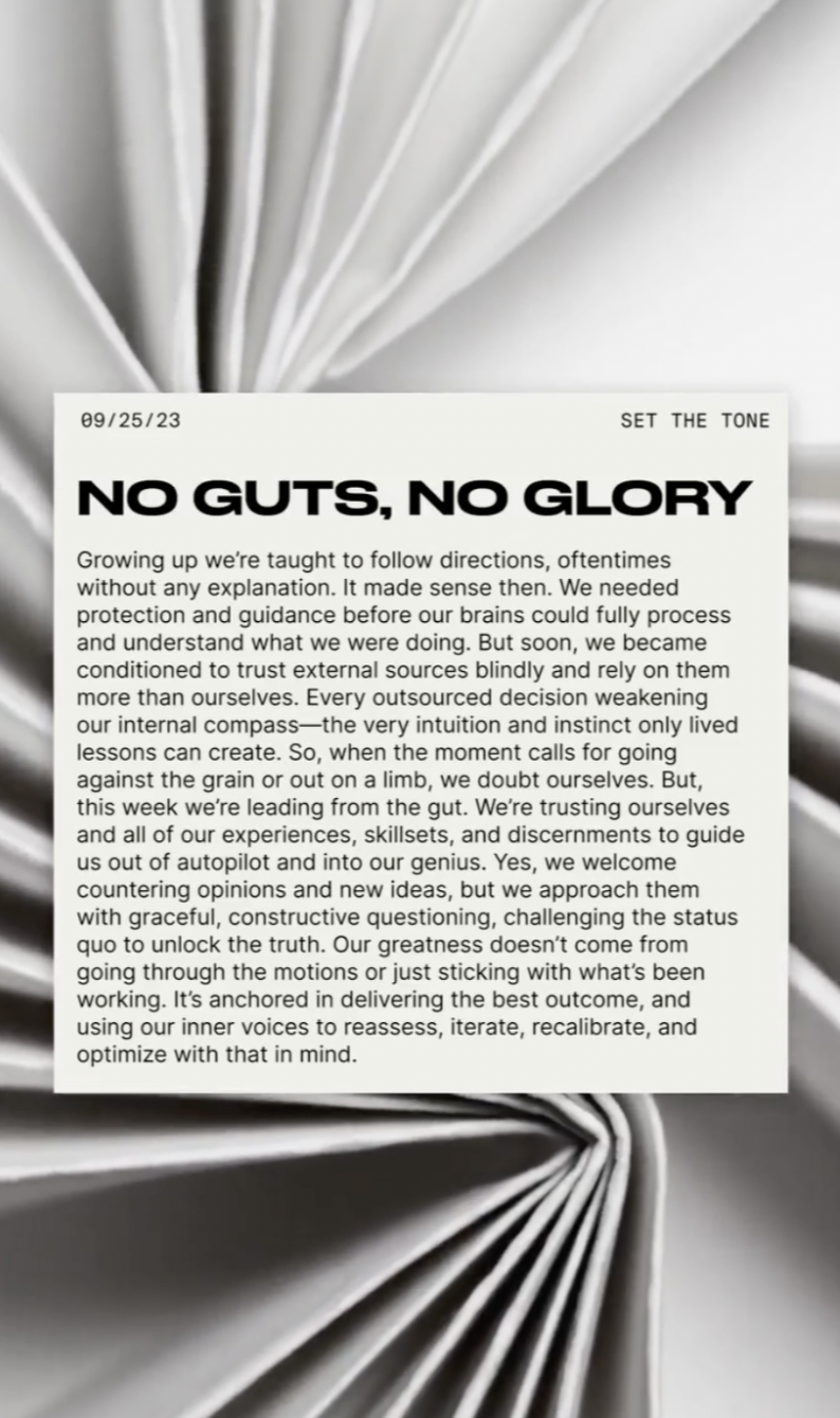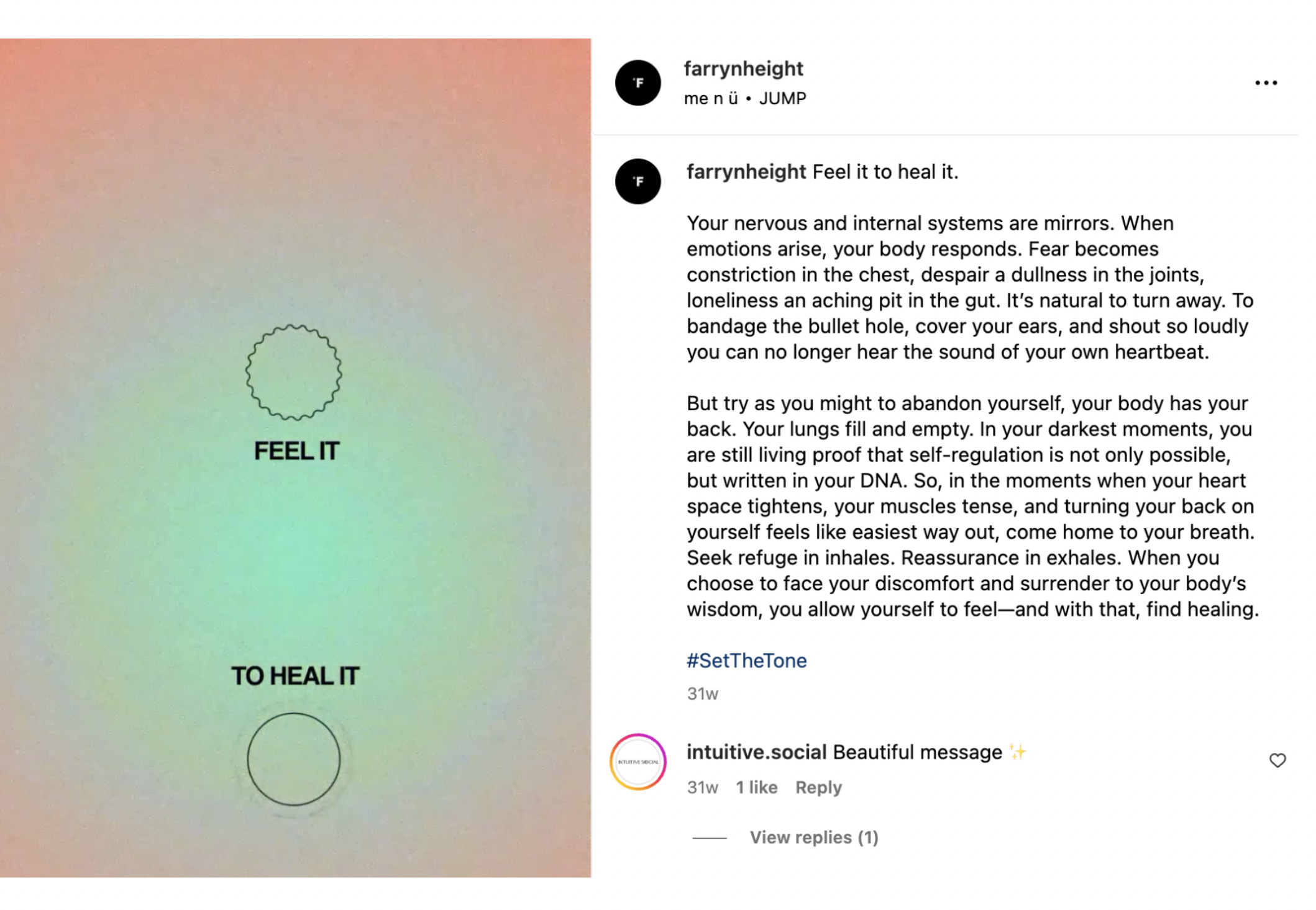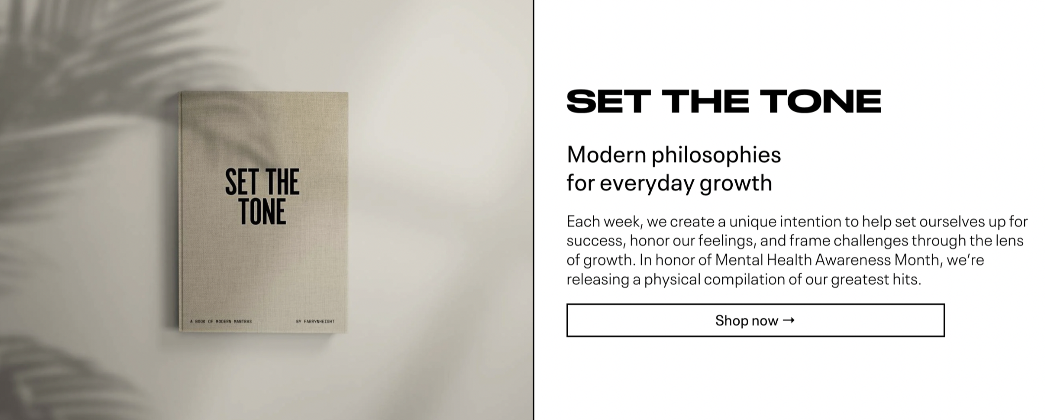 I collaborated with Farrynheight on their Set the Tone series, creating messaging that elevates mental wellbeing as a fundamental business value. The series showcases 52 inspiring messages, each brought to life by 52 artists, blending meaningful words with powerful visuals to spark conversations, challenge perspectives, and inspire positivity. Set the Tone was brought to life across various touchpoints, including Farrynheight's social channels, a printed book, and their podcast, offering a dynamic and immersive experience for their audience.